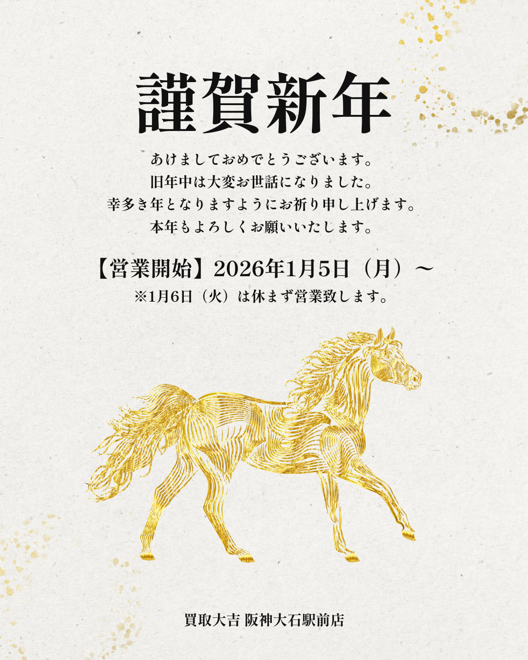 これからも、お客様の喜びを考え地域・社会の貢献に繋がるよう努力します。神戸市内、灘区、東灘区の買取の事なら高価買取、安心丁寧、買取大吉 阪神大石駅前店へお越しください。